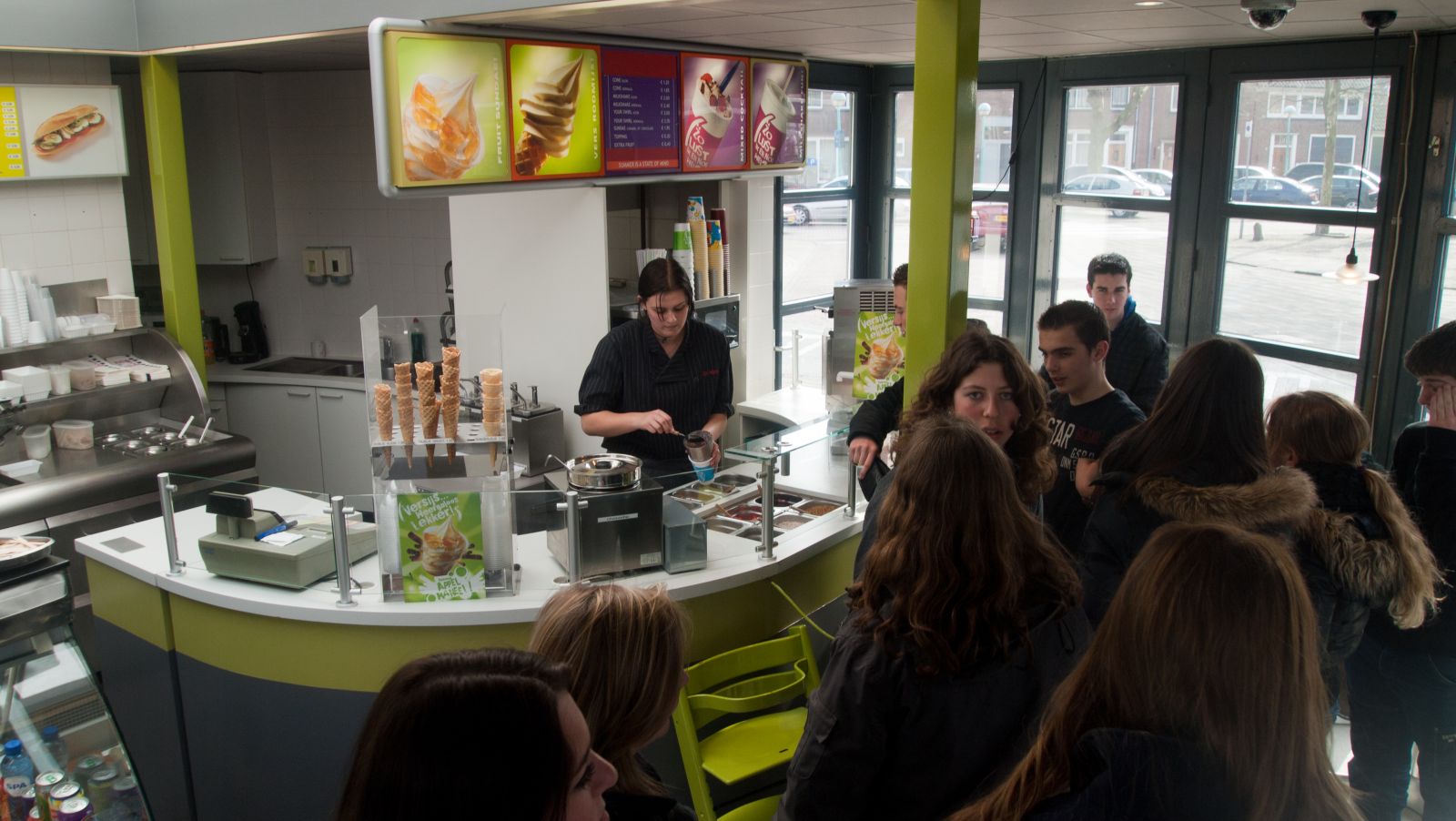 Het is voorzien van een groot, aantrekkelijk terras waar u kunt genieten van onze beroemde friet, snacks, broodjes of een heerlijke Swirl.